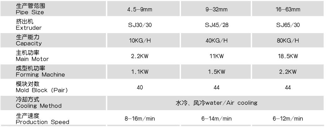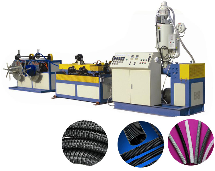 該機(jī)主要以PVC、PP、PE為原料生產(chǎn)小口徑單壁波紋管。